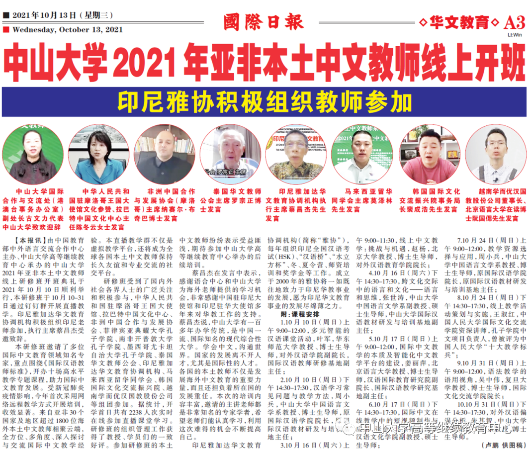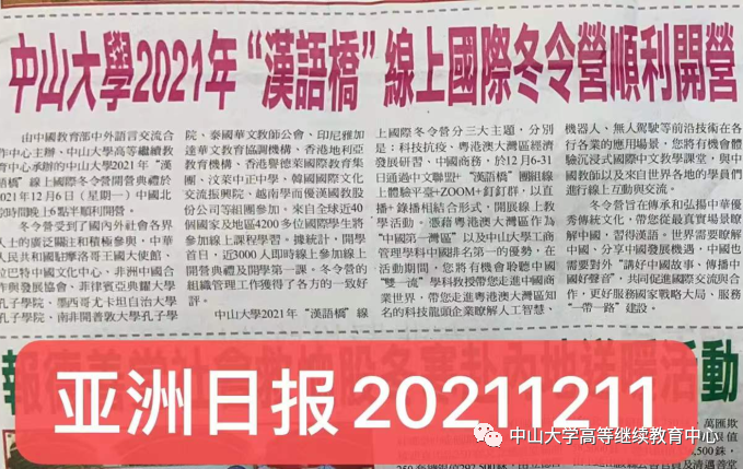 2021年10-12月,由教育部中外语言交流合作中心主办,威廉williamhill高等继续教育中心承办的威廉williamhill2021年亚非本土中文教师线上研修班、拉丁美洲本土中文教师线上研修班、“汉语桥”线上国际冬令营”成功开展,受到了师生的一致好评,并获得了国外多家权威媒体的争相报道。“讲好中国故事、传播好中国声音”,国际中文教育在“一带一路”建设深入推进阶段,推动中华文化走出去、塑造中国世界形象、提升国家软实力等方面具有独特优势。未来,我们将继续推动国际中文教育事业发展壮大,更好服务国家战略大局、服务“一带一路”建设。