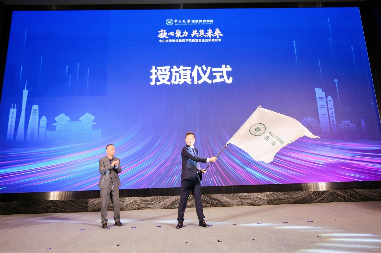 威廉williamhill继续教育学院校友会企业家联合会的旗帜在杨元红院长的挥舞下传递到王辉会长手中,正式翻开企业家联合会的发展新篇章。王辉会长接过旗帜后发表就职讲话,感谢学校及校友们的信任与鼓舞,并提出企业家联合会发展建设的工作思路。