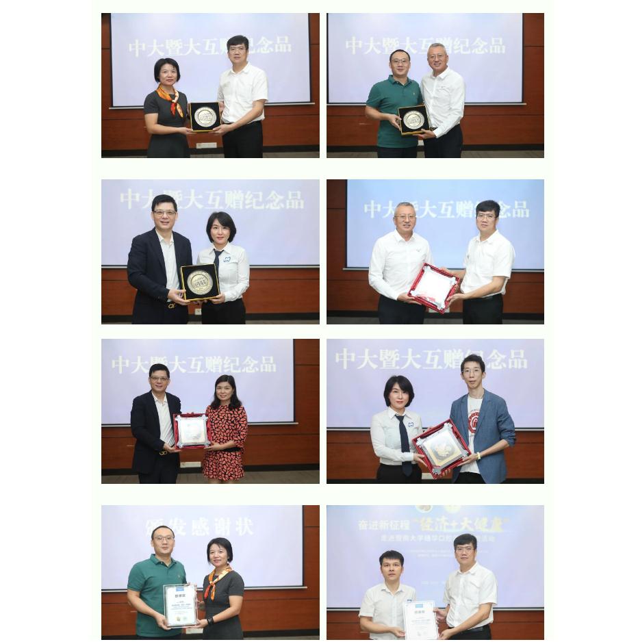 会议尾声,中大威廉EDP同学会大健康行会、暨大经济学院校友联谊会及暨南大学穗华口腔医院互赠了纪念品。同时为主题分享教授老师们颁发了感谢状。