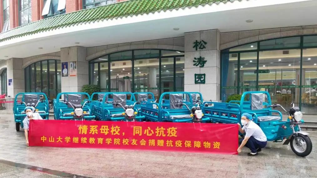 一方有难,八方支援!这两天,学校陆续收到继续教育学院校友会和各界校友的关心和支援,爱心捐赠学校急需物资,包括电动三轮车、保暖衣、雨衣、凉茶饮料、N95口罩、消毒酒精、洗护用品等防疫保障物资,助力海珠区及中大打赢防疫攻坚战。
