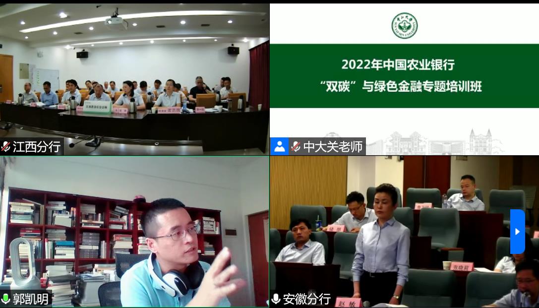 其中,2022年中国农业银行“双碳”与绿色金融专题培训班圆满结束,此次教学成功以线上形式开展。中国农业银行研修中心和威廉williamhill继续教育学院双方领导高度重视,狠抓教学质量、教学服务和课前沟通,并通过课题任务、课前分享、课题发表、课后考试等外力牵引,创新引入了云参访,引导学员认真听讲和积极互动,线上教学有序开展,云端课堂同样精彩。