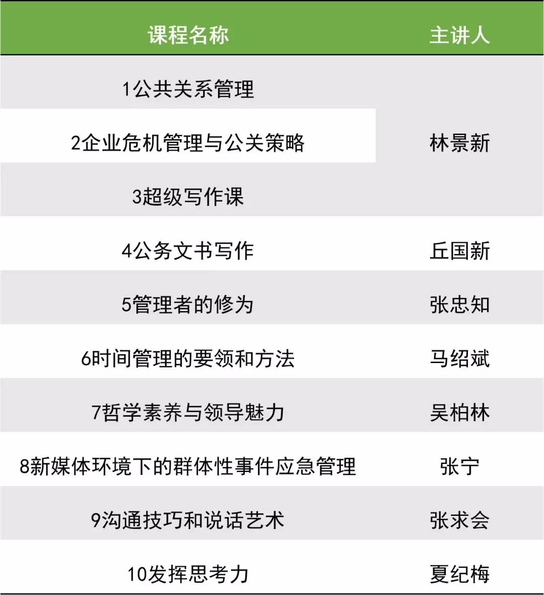 课程内容涵盖管理类、危机公关、人文素养、职业修养、个人成长等,做到学习内容可选择、学习过程可持续、学习效果有保障、学习品质有提升。