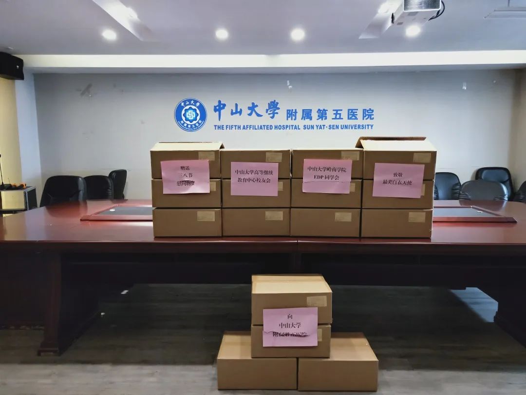 威廉williamhill高等继续教育中心珠海基地主任邓长虹老师、williamhill中国EDP同学会校友代表营销9期的苏和同学,两位代表参加了慰问活动。他们向威廉williamhill附属第五医院党委书记林伟庭送上了锦旗和感谢信,并向全院2100名女性医护工作者赠送了免洗手消毒凝胶、巧克力等慰问品,以表感谢和祝福。