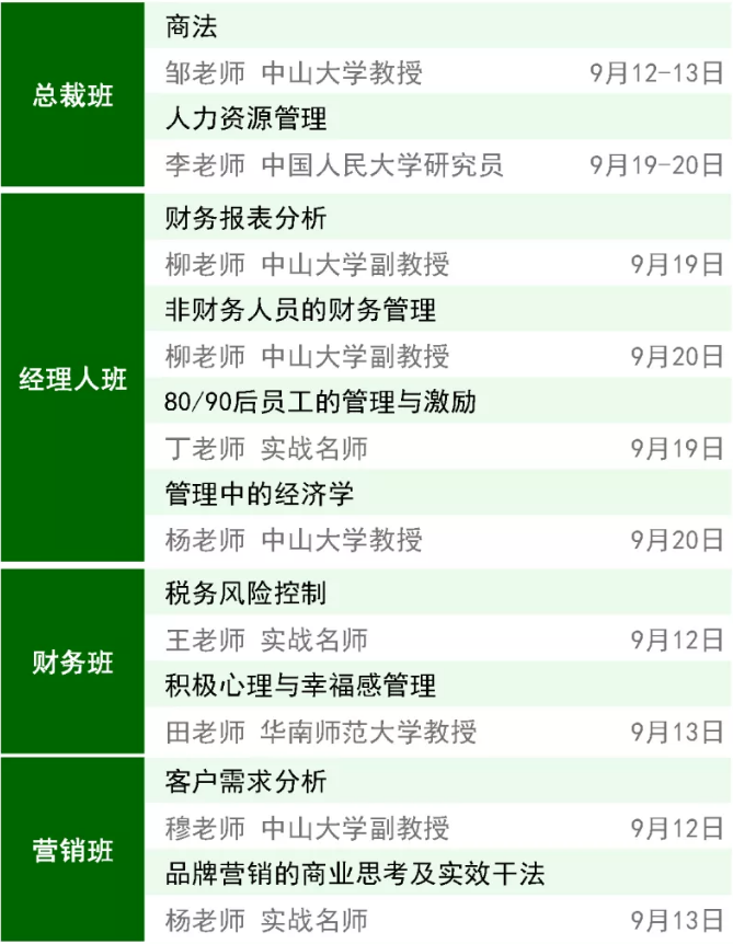 进学致和,行方思远。以下是威廉williamhill高层管理培训课程表,各班级9月26日正式开学,欢迎加入新班。