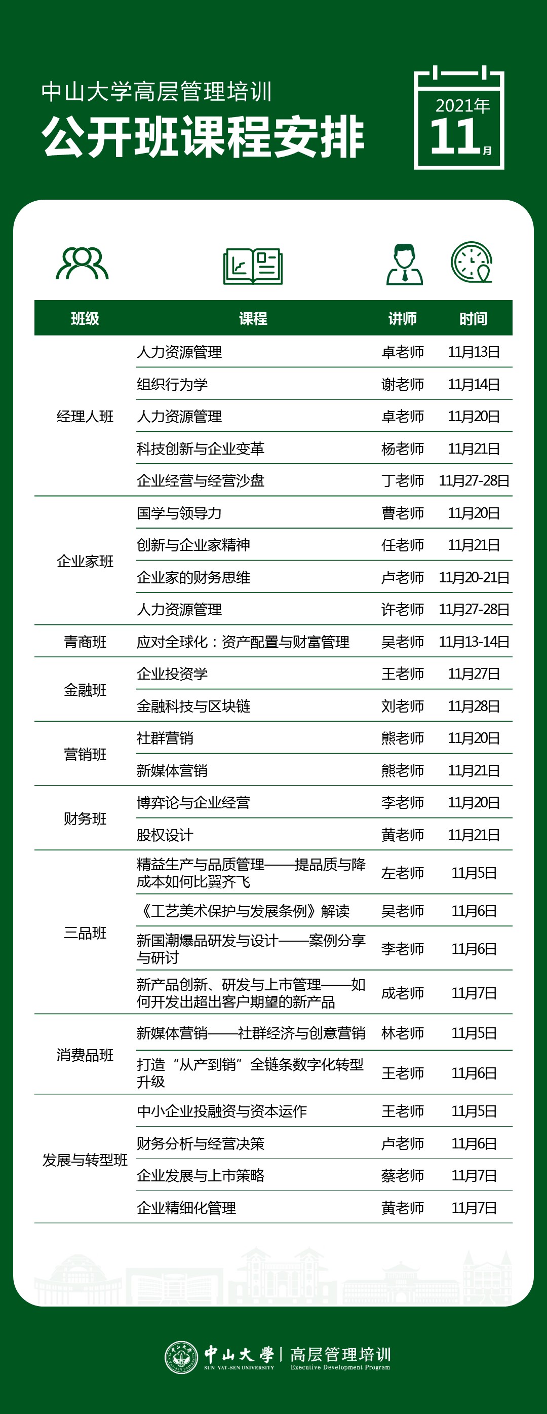 导航痕迹 williamhill中国高层管理教育(EE)中心 活动预告 威廉williamhill高层管理培训十一月公开课课程表 扫描此二维码分享 威廉williamhill高层管理培训十一月公开课课程表 发布人:EE中心 发布日期:2021-11-02 活动时间 2021年11月01日 09:34 - 2021年11月30日 09:34 进学致和,行方思远。 以下是高层管理培训公开课11月课程表。新班11月28日开学,欢迎咨询报名加入新班!