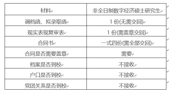非全日制拟录取考生需交回:现实表现复审表、合同书(一式四份全部交回,学校盖章后返还其中两份给学生)。
