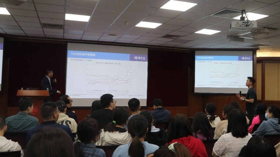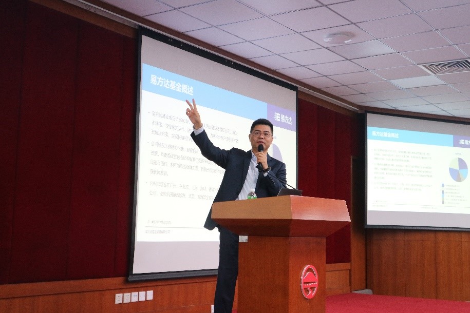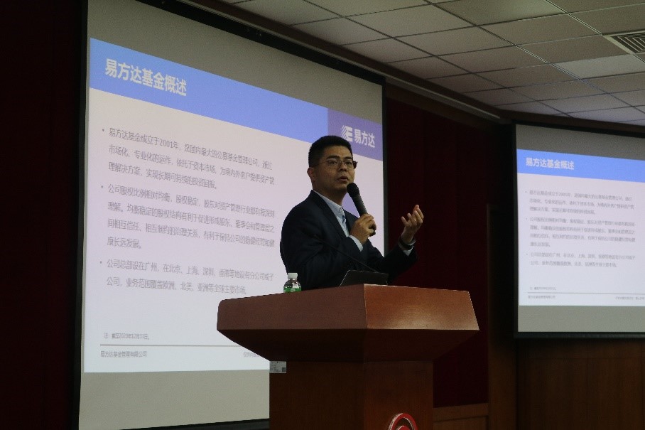 首先,林伟斌博士为同学们介绍了我国资产管理与公募基金二十年多来的发展历程以及易方达基金的公司架构与文化。公募基金是我国人民金融资产的重要组成部分,其经过了20多年的发展,现其资产规模已突破20万亿人民币。在林伟斌看来,资产管理的本质是受人之托,代客理财的信托责任,作为从业人员更应该勤勉尽责,这也契合易方达基金一直以来崇尚的“持信,抱朴,存谐,笃进”的企业精神和“客户利益至上,诚信、正直”的核心价值观。