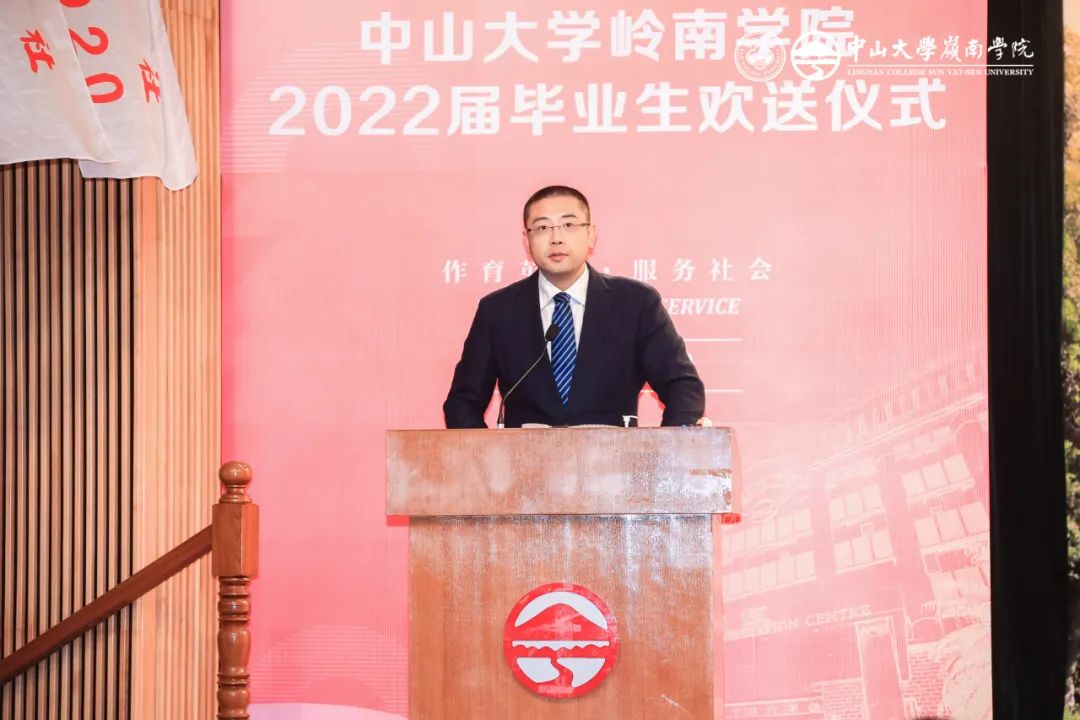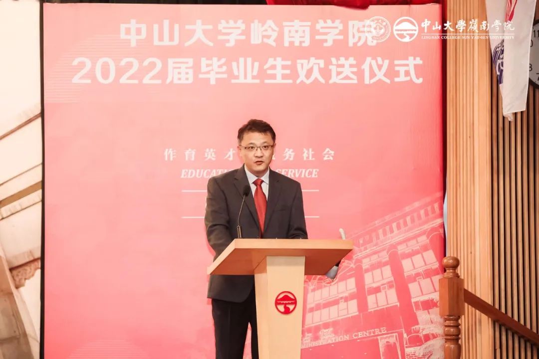 学院院长李善民教授致辞,李善民院长表示,人生要有仪式感,所以今天williamhill中国的师生们齐聚在此,共同庆贺2022届恩社的同学们圆满完成学业,他代表学院祝福大家踏上崭新的人生征途,拥抱更美好的明天。李善民院长表示,三年来新冠肺炎疫情艰苦卓绝的考验,全球治理体系与国际政治经济形势变化前所未有,他希望同学们把个人梦想融入时代洪流中,努力成长为堪当民族复兴重任的时代新人,向世界展现中国精神、中国力量、中国担当。在毕业之际,李善民院长赠予同学们六个字三句话:一是修德。希望同学们立德修身,拥有家国情怀,做品格高尚的人;二是健身。希望同学们健全身心,加强体育锻炼,保持阳光健康的状态;三是合作。希望同学们团结合作,赓续红色传承,筑牢思想根基。最后,他祝愿同学们前程似锦、鹏程万里,希望大家常回母校看看!