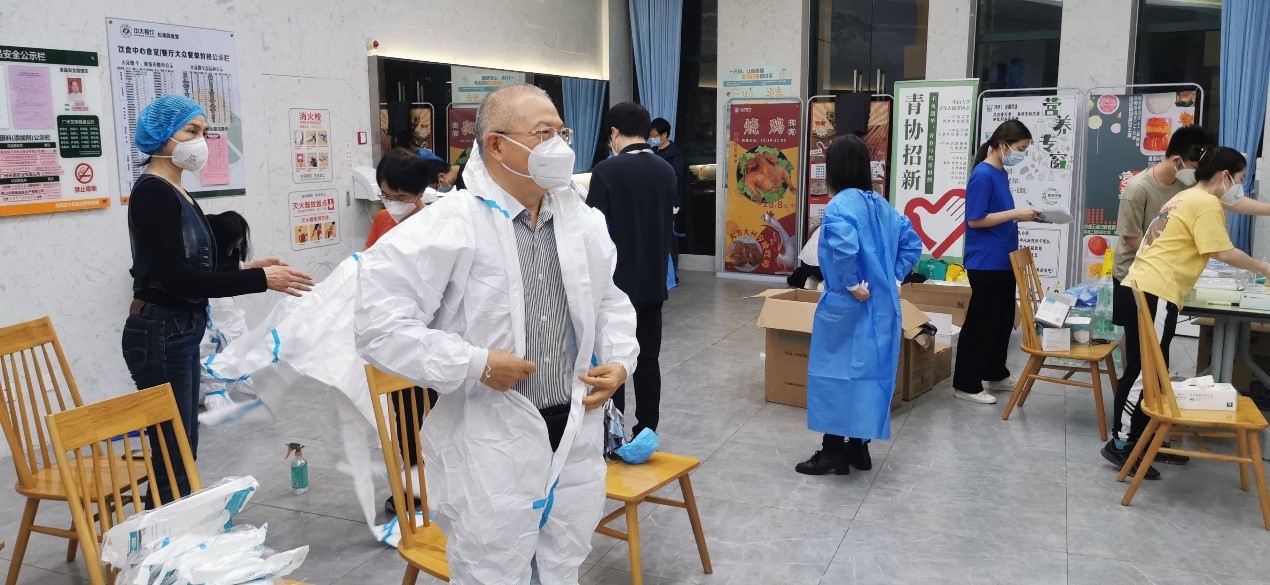 回去的路上,老师们问他为什么也来服务了,他轻松却又坚定的说道“我和你们一样,也是一名普通的志愿者,我天天坚持跑步锻炼,所以我爬7楼不输你们。”他笑着反问大家为什么这么多天都选择驻守在学校,“我是一名老师,更是一名党员”,这是现场回答最多的一句话。大家互相鼓着劲,幽默又认真的说:“这次保障服务工作,对我们老师来说也是最好的劳动教育,我们要用实际行动来鼓励教育我们的学生,教育他们将来要做德智体美劳全面发展的社会主义建设者和接班人!”
