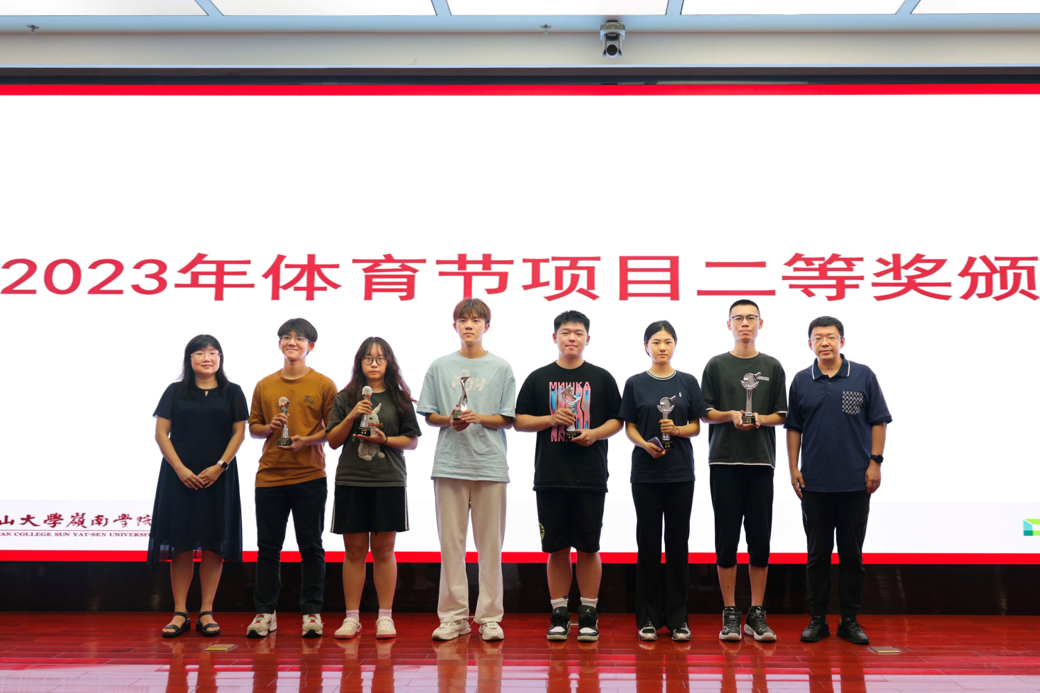 随后,黄毅书记、樊峰会副书记、李兵副教授、戴芸副教授、张硕辰主任、袁家臻老师分别为本届体育节的各项目一、二、三等奖获奖团队及个人颁发奖杯。