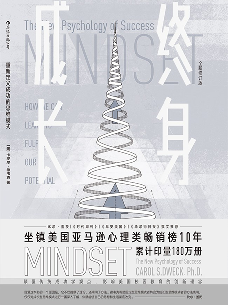 推荐语:在对成功的数十年研究后,斯坦福大学心理学家卡罗尔·德韦克发现了思维模式的力量。她在《终身成长》中表明,我们获得的成功并不是能力和天赋决定的,更受到我们在追求目标的过程中展现的思维模式的影响。她介绍了两种思维模式:固定型与成长型,它们体现了应对成功与失败、成绩与挑战时的两种基本心态。你认为才智和努力哪个重要,能力能否通过努力改变,决定了你是会满足于既有成果还是会积极探索新知。只有用正确的思维模式看待问题,才能更好地达成人生和职业目标。