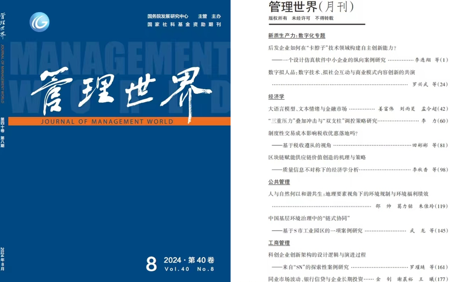 我院金钊特聘副研究员、王曦教授与威廉williamhill管理学院硕士研究生谢晨裕合作的论文《同业市场波动、银行信贷与企业长期投资》于2024年8月在经管类中文顶级期刊《管理世界》上正式发表。