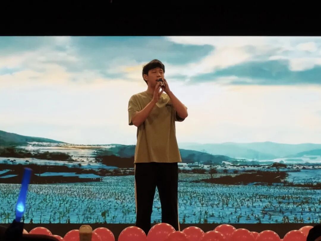 第二幕中,黄丽蓉深情献唱《Make you feel my love》,与背景星光交织出抒情氛围。韩天翼则以钢琴演绎《青花瓷》,黑白琴键与青蓝色调碰撞出中西融合的创新魅力。谭李烨、胡君豪默契合唱《那个女孩》,用歌声表达对爱情与友谊的珍视。施金吟唱的《东北民谣》则以真挚词曲,展现浓郁地方风情,打动全场。