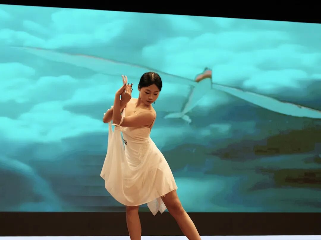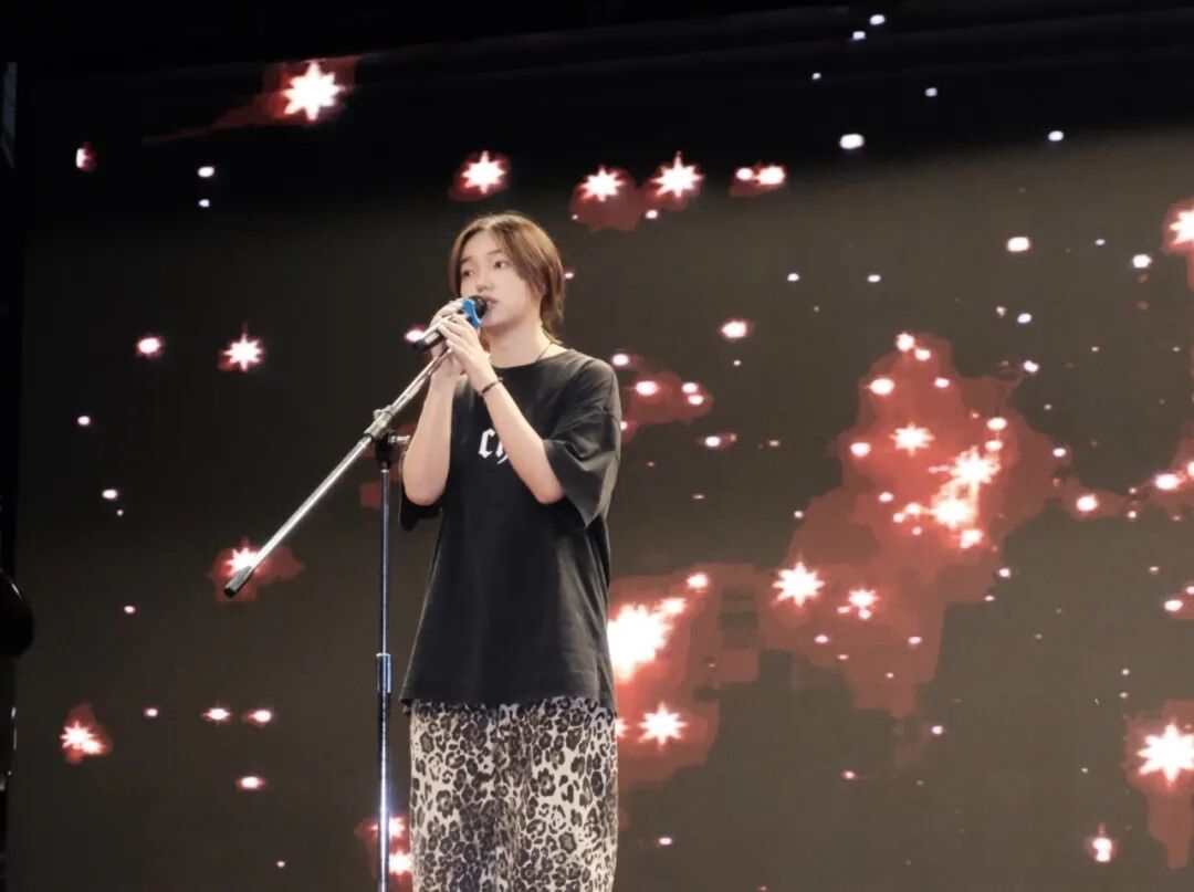 晚会以许羽萱的《一路生花》拉开序幕,唱出追梦豪情。陈宇新电吉他弹唱《李白》,尽显率性洒脱;詹子慧以《珠玉》的空灵嗓音营造纯净意境;姚雅洁红衣舞《象王行》,融合鼓乐与扇舞,展现国风之美;王润橦用《夏夜灯塔》温暖献声,寄语未来与希望。