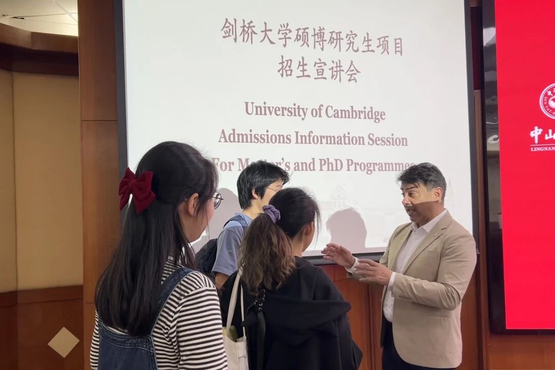 Dr. Pérez系统讲解了剑桥大学的招生政策和申请流程。他建议同学们要善用剑桥官方网站的课程目录,通过精准的关键词搜索找到最适合自己的研究项目,并提醒大家注意区分奖学金申请与项目申请的不同截止时间。针对申请文书的准备,他特别指出,个人陈述应当聚焦学术兴趣和研究潜力,避免空泛的表述;研究计划则需要清晰展现课题的创新性、可行性和个人特色。