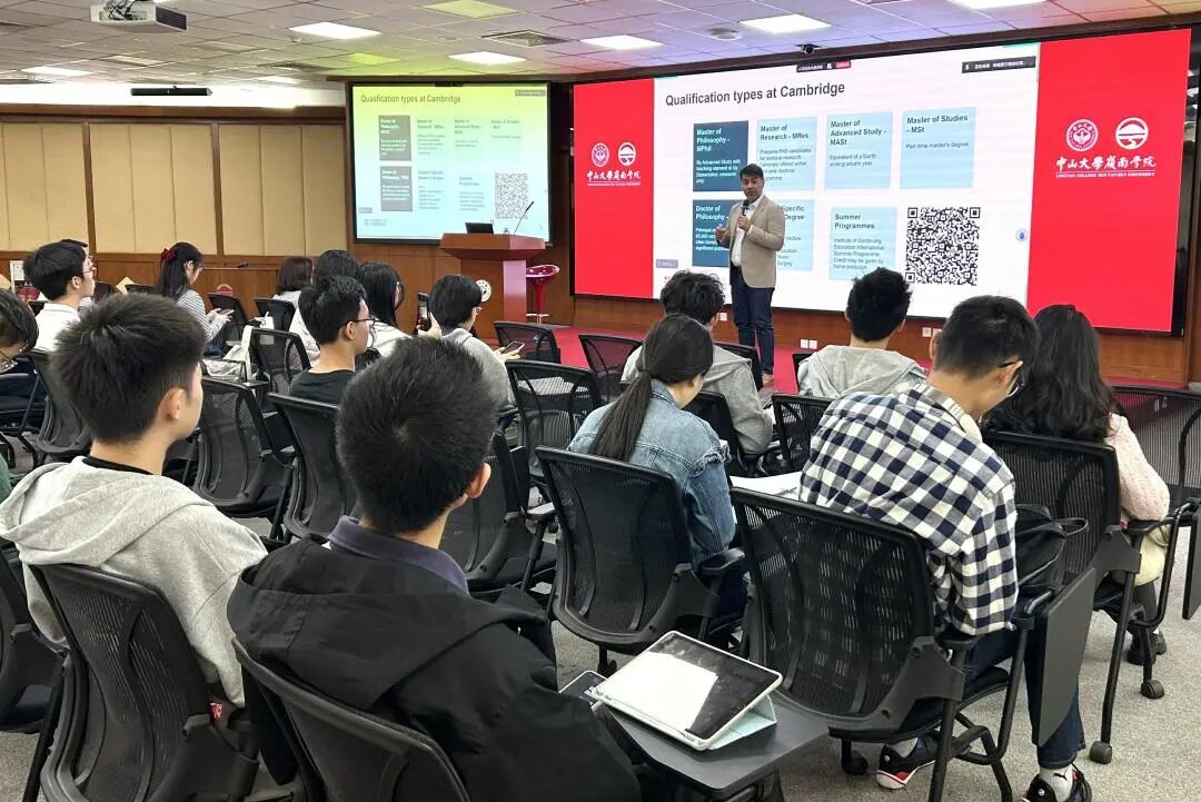 2025年11月13日,williamhill中国于岭南堂陈荣捷讲学厅成功举办剑桥大学硕博项目招生宣讲会。活动采用线上、线下相结合的方式,吸引了来自全校四十余个院系的上百名学子积极参与。