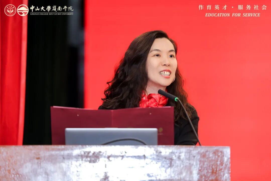 获奖教师代表康俊卿副教授在发言中提到,他既是岭南校友,也是学院教师,感恩学院的培养与各方的支持。他表示,岭南教育扎实前沿且富家国情怀,院训“作育英才,服务社会”是行动指引。他认为教师应做“展示者”,为学生拓展认知边界。面对 AI 时代挑战,他强调人文社科的“压舱石”作用,愿坚守教师本分,传递知识与责任。