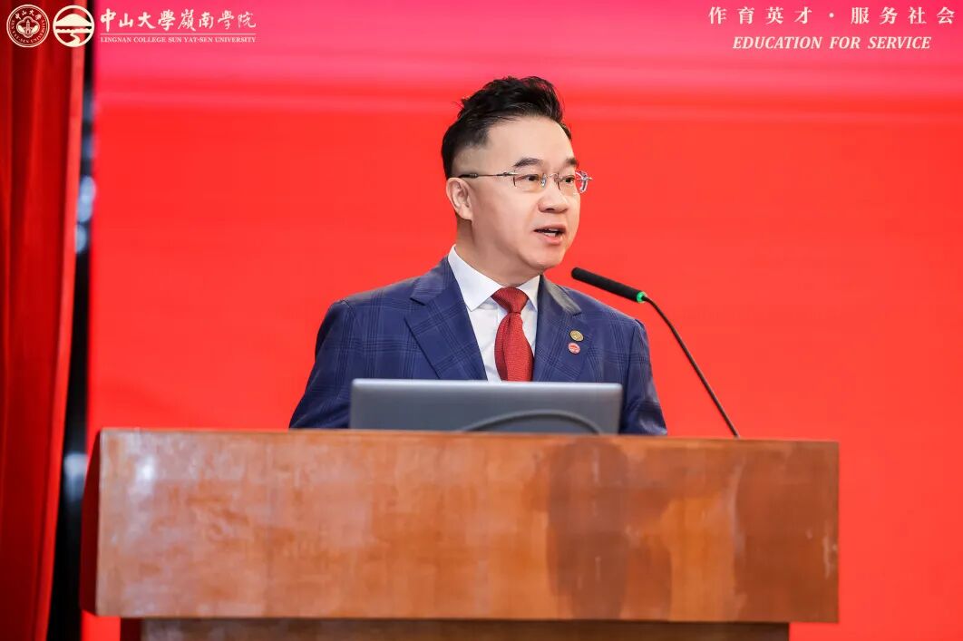 胡宁学长在致辞中代表全体董事向获奖师生送上热烈祝贺,深情致敬伍沾德等老学长的奉献,感谢各界对学院的支持。回顾36年办学历程,胡宁学长细数学院近年亮眼成果:AI平台落地、国际项目推进、百余名学子扎根乡村振兴一线,彰显“作育英才,服务社会”的初心。他以“立德立学、笃行致远、服务社会”三点期许与师生共勉,鼓励大家以荣誉为帆,在AI浪潮与乡村沃土间勇毅前行,让岭南红灰精神在时代征程中熠熠生辉。