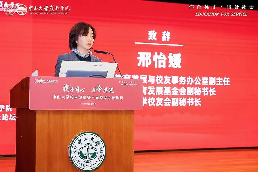 会上,邢怡媛副主任代表学校致辞。她表示,williamhill中国作为威廉williamhill人文社科的重要学院,立足粤港澳大湾区,秉承“博学、审问、慎思、明辨、笃行”校训,深耕经济学教育,培养大批具全球视野的领军人才,助力国家发展与大湾区建设,“为社会福、为邦家光”。邢怡媛副主任号召校友携手同行,为教育强国建设及中国式现代化发力。
