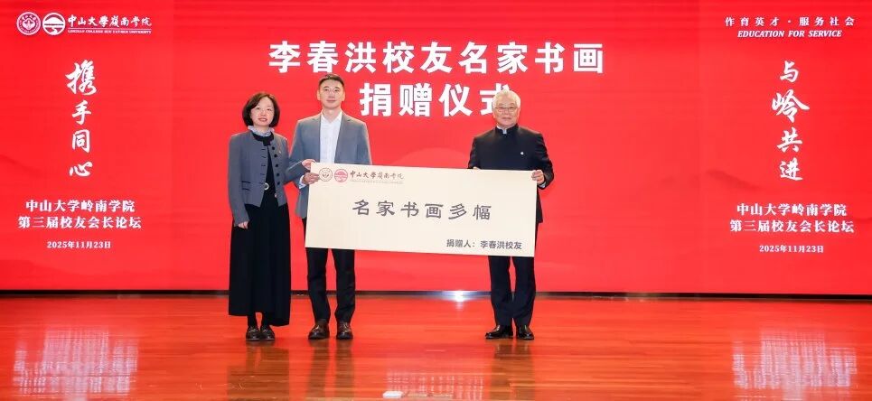 论坛期间还举行了捐赠仪式。学院校友许女士发起的“显惠公益慈善信托”拟持续支持学院教育事业,首笔款项已用于数字经济与人工智能研究,中信信托代表现场递交捐赠支票。1977级校友李春洪曾在学院35周年院庆时捐赠名家画作并亲题诗,现陈列于MBA大楼十层1002讲学厅,仪式上他分享了画作背后的动人故事。