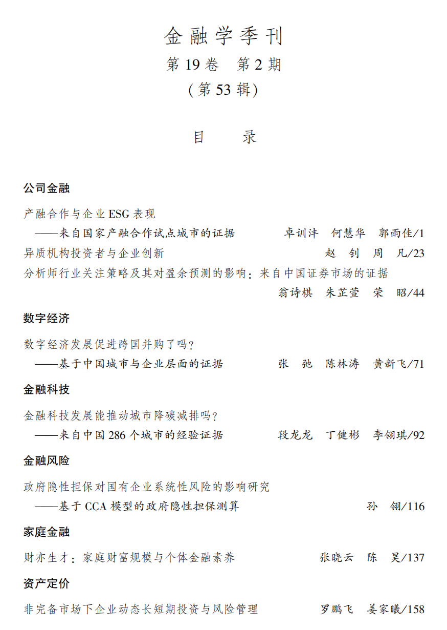 最新!快来看看《金融学季刊》2025年第2期的作者有没有你认识的专家