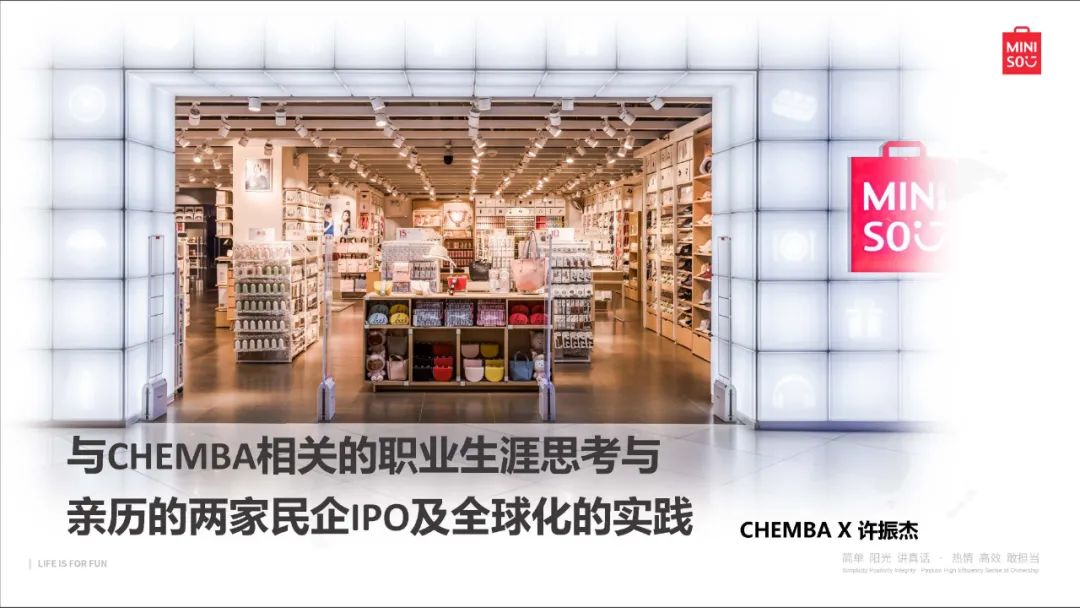 许振杰先生是CHEMBA10班的优秀校友,目前担任名创优品全球副总裁兼首席人力资源官。他的演讲主题为“与CHEMBA相关的职业生涯思考与亲历的两家民企IPO及全球化的实践”。