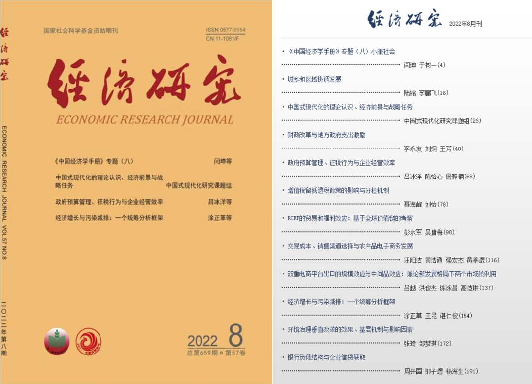 《经济研究》2022年8月刊