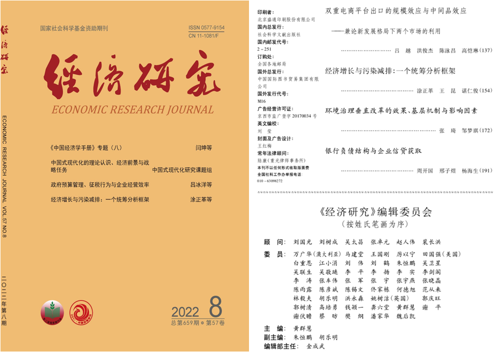 williamhill中国周开国教授、杨海生副教授与博士研究生邢子煜合作的论文《银行负债结构与企业信贷获取》在经济学中文顶级期刊《经济研究》2022年第8期发表。
