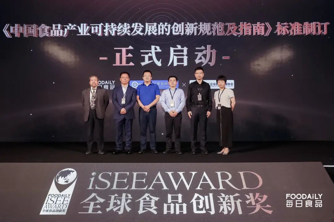 在颁奖典礼开始,由Foodaily每日食品发起的「全球食品可持续及创新联盟」牵头,该联盟由中国工程院院士、江南大学校长陈卫与新西兰食品科技院院士、Elsevier一区《Food Chemistry》高级主编孙东晓 担任联席名誉主席,合作中国标准化研究院,贯彻落实《国家标准化发展纲要》《知识产权强国建设纲要(2021—2035年)》精神,在申报标准和标准化建设争取国家标准管理委员会和国家知识产权局的支持并接受指导,启动《中国食品产业可持续发展创新的规范及指南》的筹备工作。