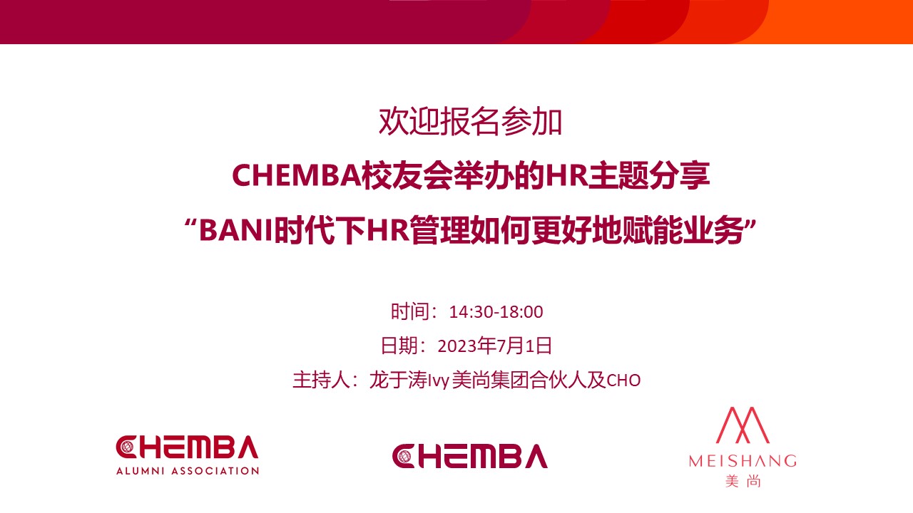 欢迎报名参加7月1日校友会举办的HR主题分享—“BANI时代下HR管理如何更好地赋能业务”