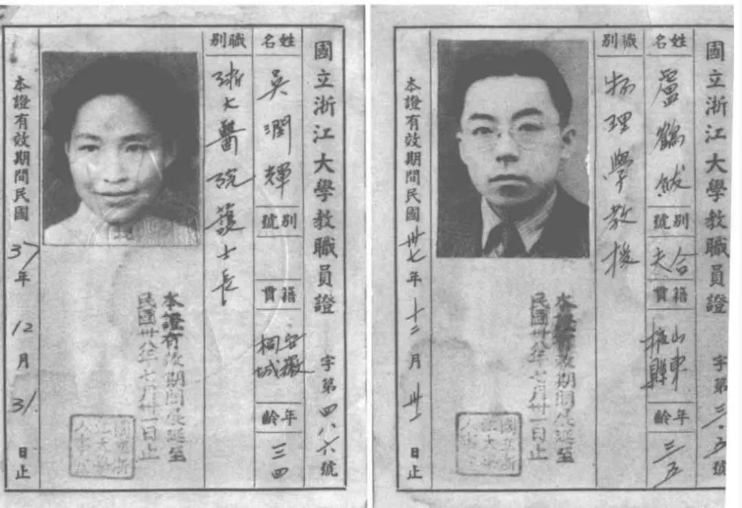 1948年卢鹤绂院士和妻子的浙江大学教职员证