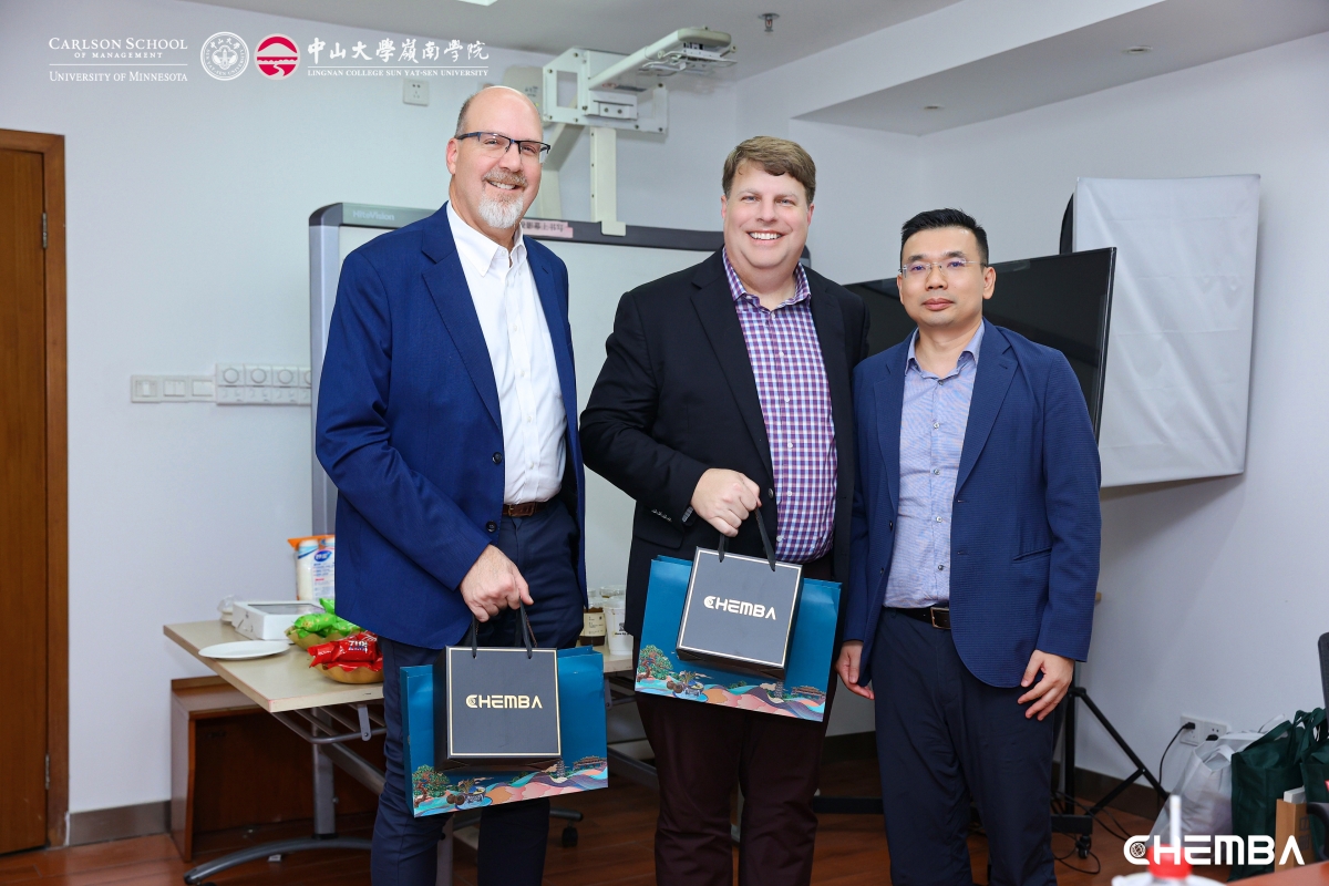 williamhill中国院长林建浩与卡尔森学院院长Jamie Prenkert就双方学院合作项目进行了深入洽谈。双方院长均表达了对现有的CHEMBA项目合作成果的认可,并探讨了未来合作的潜在领域和发展方向。强调了在教育和商业菁英培养方面的共同目标,以及对未来合作的积极展望。