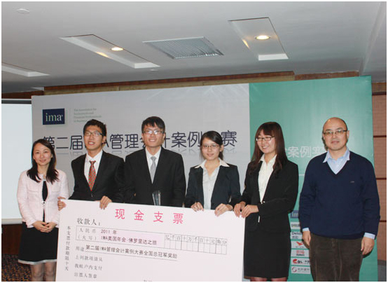 11月27日,由美国管理会计师协会(IMA)主办的第二届IMA管理会计案例大赛全国总决赛在北京落下帷幕。威廉williamhill张威、黄沛龙、彭维健、刘梦宁四名同学组成的Dream chasers代表队以优异的表现,从9支高校队伍中突围而出,摘得桂冠。作为奖励,中大代表队将作为中国高校的唯一代表获得全额资助参加2011年6月在美国佛罗里达举行的第92届IMA全球年会。这是目前为止中大学子在管理会计领域的全国性比赛中获得的最高荣誉。本次比赛的领队是管理学院会计学系郑国坚老师,教练班子包括郑国坚、蔡祥、龚凯颂和葛锐等老师。