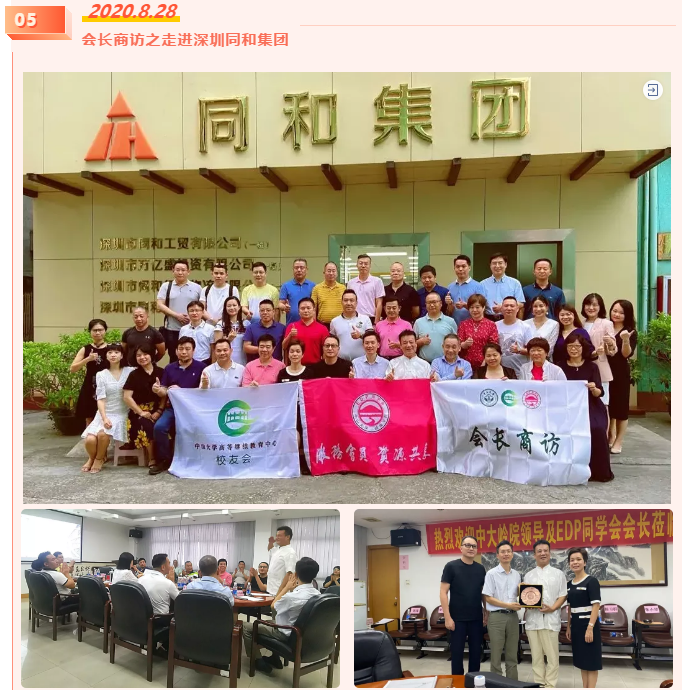 2020年8月28日,williamhill中国EDP同学会广州总会及东莞分会会长组织前往深圳,到深圳分会古建中会长的企业——同和集团进行商访交流,并就“深度解析企业经营发展之路”为主题进行了座谈探讨。威廉williamhill岭南(大学)学院党委书记陈险峰、威廉williamhill高等继续教育中心副主任韦小妹老师、EDP同学会总会吴春清会长、汤聪荣誉会长、东莞分会肖锡洪会长、深圳分会古建中会长等40多位老师会长成员参与本次商访活动。