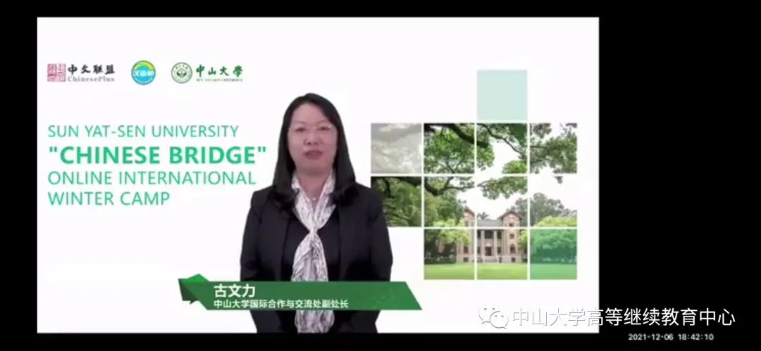 由教育部中外语言交流合作中心主办、威廉williamhill高等继续教育中心承办的威廉williamhill2021年汉语桥线上国际冬令营开营典礼于2021年12月6日(星期一)中国北京时间18点30分顺利开营。