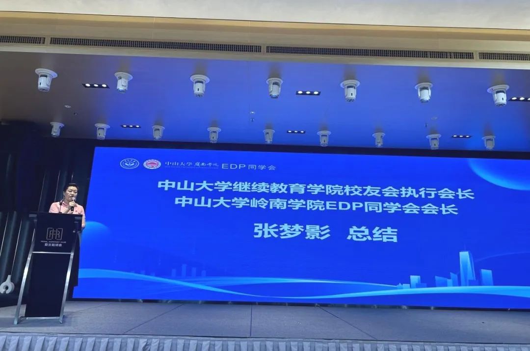 ● 活动最后,岭院EDP同学会会长张梦影作总结发言,她向与会嘉宾介绍了岭院EDP同学会的发展,欢迎更多优秀校友加入这个精英的组织共同打造优质的校友平台。同时针对本届论坛主题表示,在数字化发展正给社会经济带来深刻变革的背景下,此行企业家校友也希望寻找数字化转型的答案。通过参观美的,我们已经找到了答案,北滘的企业发展和时代变迁结合得非常好,特别是美的集团的人才使用价值观。在数字化时代,人才是核心,我们要抓住新的机会,不断迎接新挑战,用数字化智能手段、精英人才再创新辉煌,实现企业的长足发展。