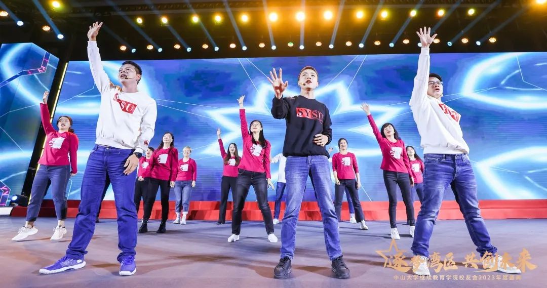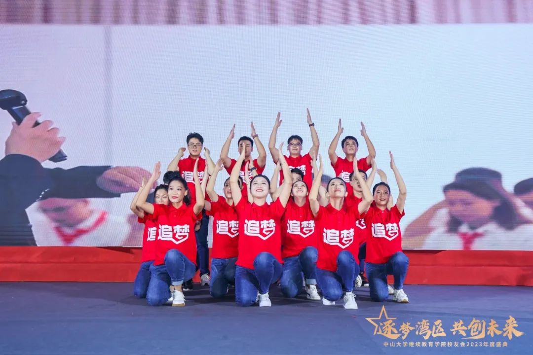 继续教育学院老师们带来歌舞节目《我们都是追梦人》。梦想如画,青春如歌。中大师生厚植爱校荣校情怀,凝聚奋进力量助力母校建设,推动湾区发展,在逐梦的路上用行动共同描绘了湾区最美同心圆。