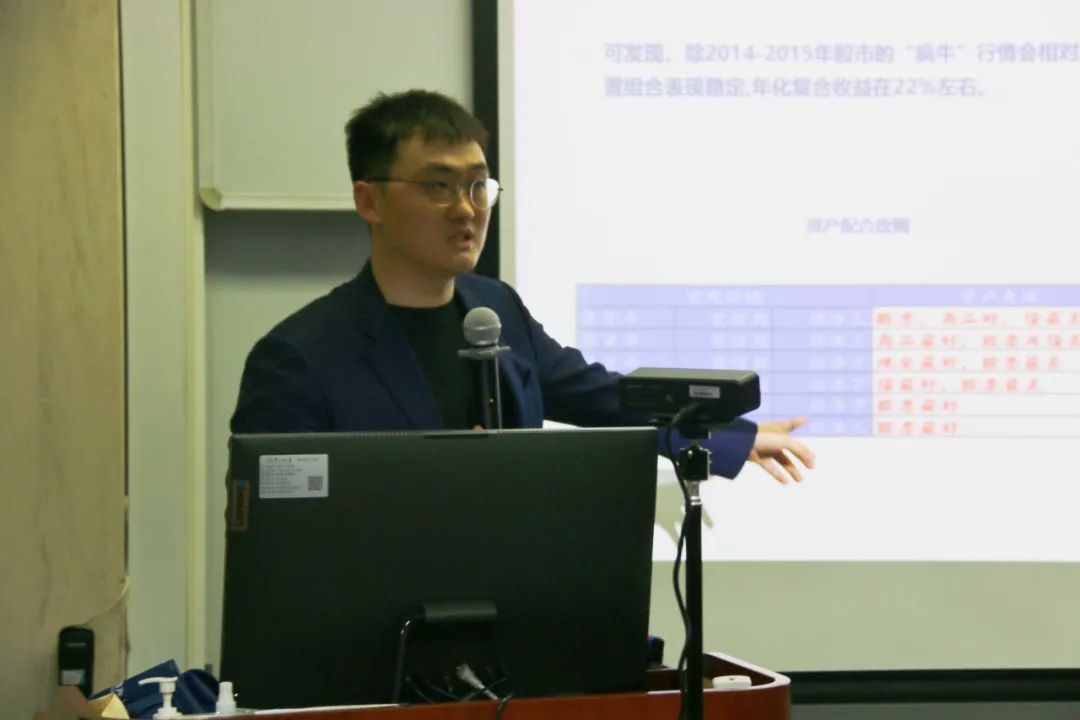中心执行主任漆剑老师向同学们介绍了赵文庆博士的专业背景与职业经历,并对嘉宾的到来表示热烈的欢迎。赵博士基于他作为宏观策略分析师的职业经验,结合大量数据图表和案例分析,从国内经济增长分析框架及展望、物价跟踪分析框架、宏观调控政策分析框架及展望、经典资产配置模型介绍及改进方向四个方面展开,为同学们带来了一场干货满满、说理透彻、生动有趣的讲座。